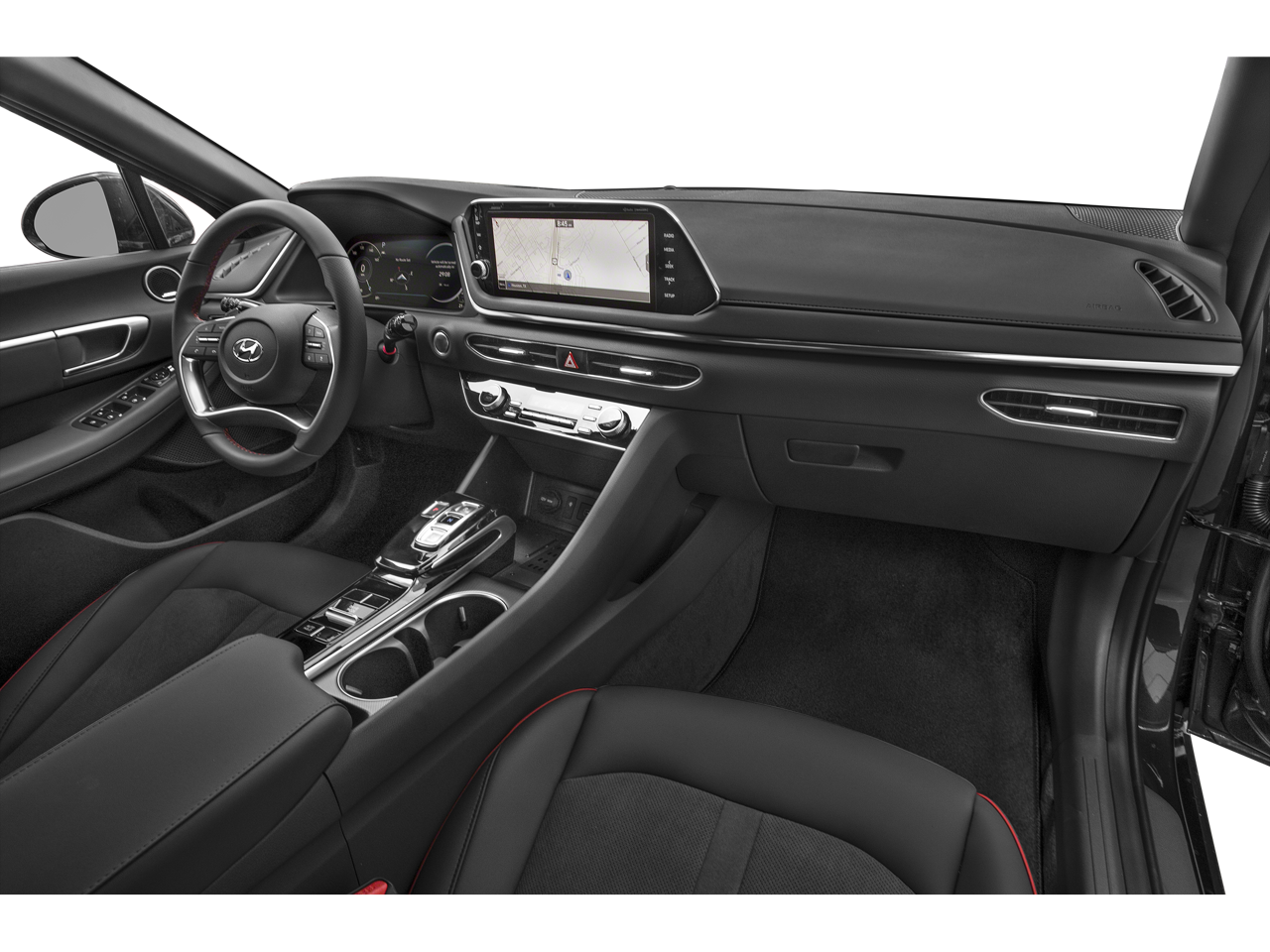 - Radio: AM/FM/MP3/HD/SiriusXM Display Audio w/Nav -inc: 10.25" color touchscreen, Bose premium audio w/12 speakers (1 center channel, 2 dash, 2 front tweeters, 4 door mounted, 2 rear mounted speakers plus 1 rear mounted subwoofer), dynamic voice recognition, integrated Bluetooth®, Blue Link connected car system, Apple CarPlay, Android Auto, USB, diversity antenna for navigation and HERE HD traffic